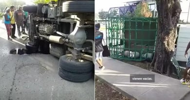 Un camion se renverse avec des bouteilles de gaz dans une avenue centrale de Santiago de Cuba
